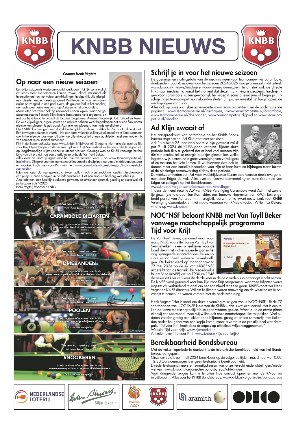 - Pagina KNBB Nieuws. Themapagina Inschrijving voor het nieuwe seizoen: KNBB-voorzitter Henk Vegter blikt terug én vooruit; Ad Klijn zwaait af; KNBB wint Van Tuyll Beker voor maatschappelijk programma Tijd voor Krijt