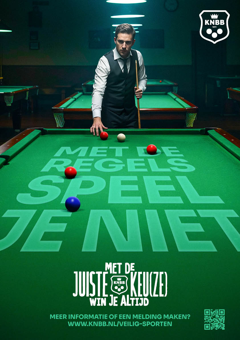Onze vrijwilligers (bestuursleden, wedstrijdleiders, arbiters etc.) zijn onmisbaar voor onze bond. Dankzij hun inzet kunnen we onze sport blijven beoefenen. Luister daarom goed naar elkaar en blijf respectvol. Toch komt het soms voor dat spelers of teams in een wedstrijd bewust niet alles geven, bijvoorbeeld om een vriend te helpen of om te voorkomen dat een bevriend team degradeert aan het einde van het seizoen. Hoe ‘aardig’ dit ook bedoeld is, het gaat in tegen de essentie van sport. Bovendien kan het kansspelaanbod in pool en snooker in de toekomst een risico vormen voor matchfixing. Laten we de sport eerlijk houden!