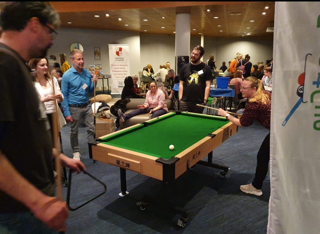 Sterker: op het moment dat dit artikel wordt geschreven, staat de druk bezochte Smartcue stand nog steeds. Namens de SmartCue Commissie zijn aanwezig: Hannah Graaf, Frank Bokdam en Erik van Haren, de schrijver van het SmartPool/SmartCue studiemateriaal.